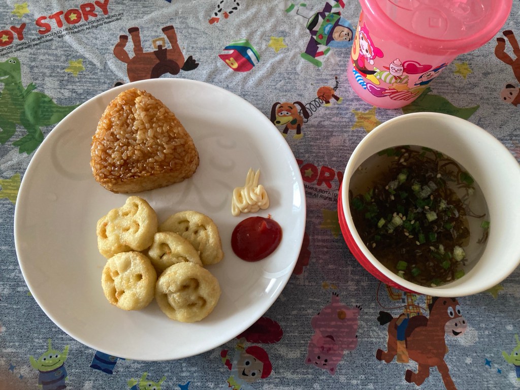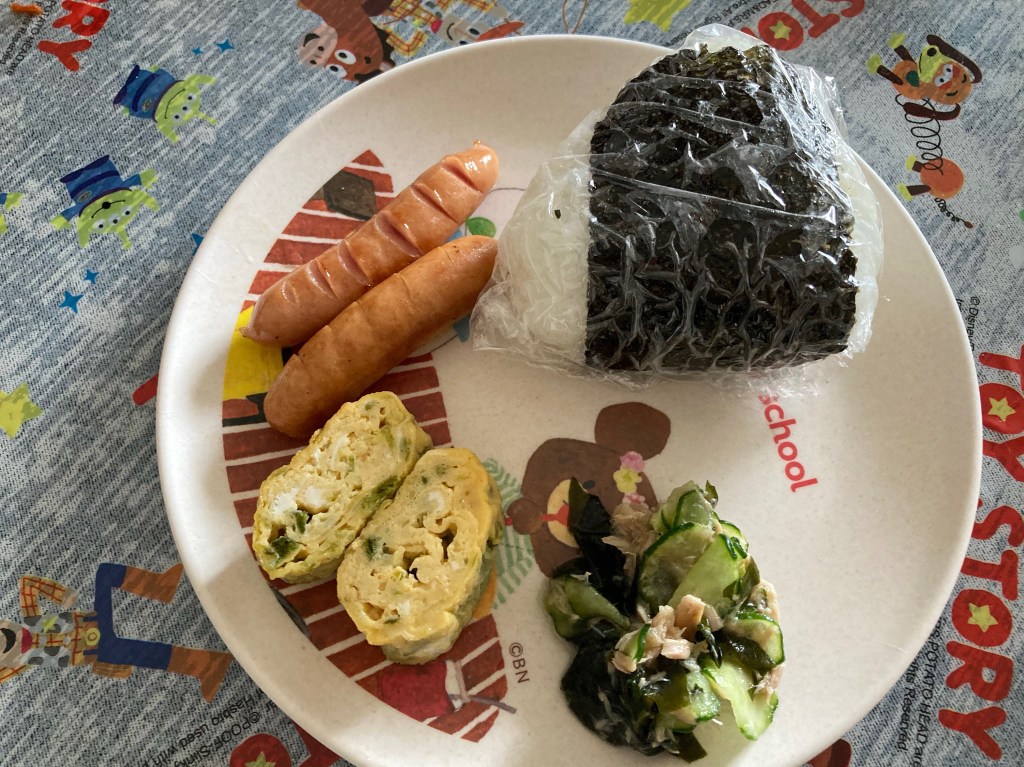 おにぎり🍙、ウィンナー、卵焼き、酢の物でした。