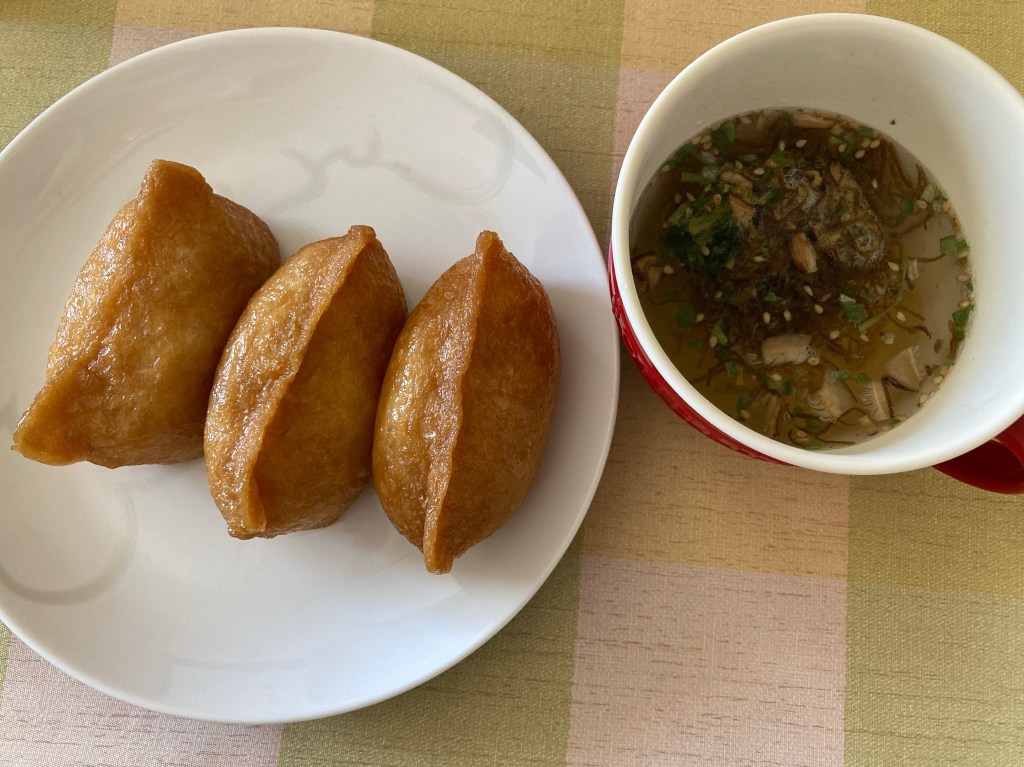 おいなりさんともずくスープでした。