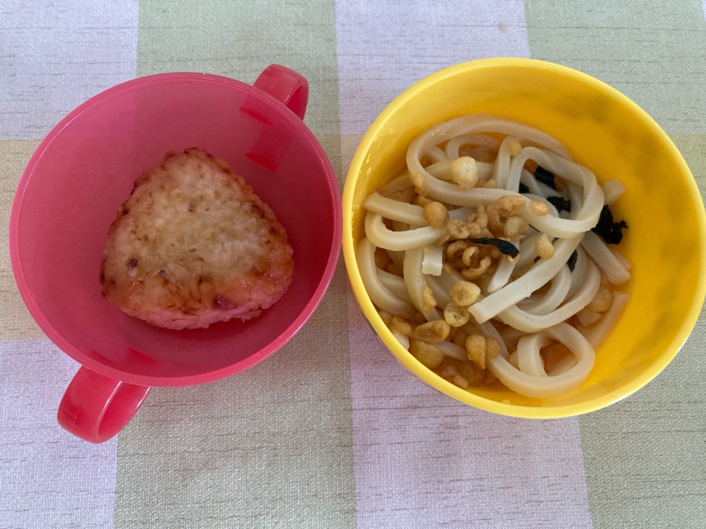 ツナマヨ焼きおにぎりとうどんでした。