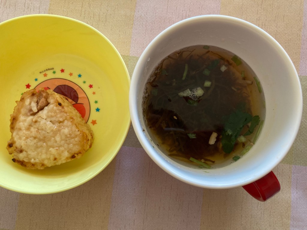 おにぎりと🍙もずくスープでした。