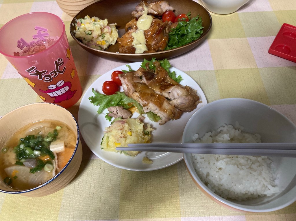 照り焼きチキン、ポテトサラダ、豚汁でした。