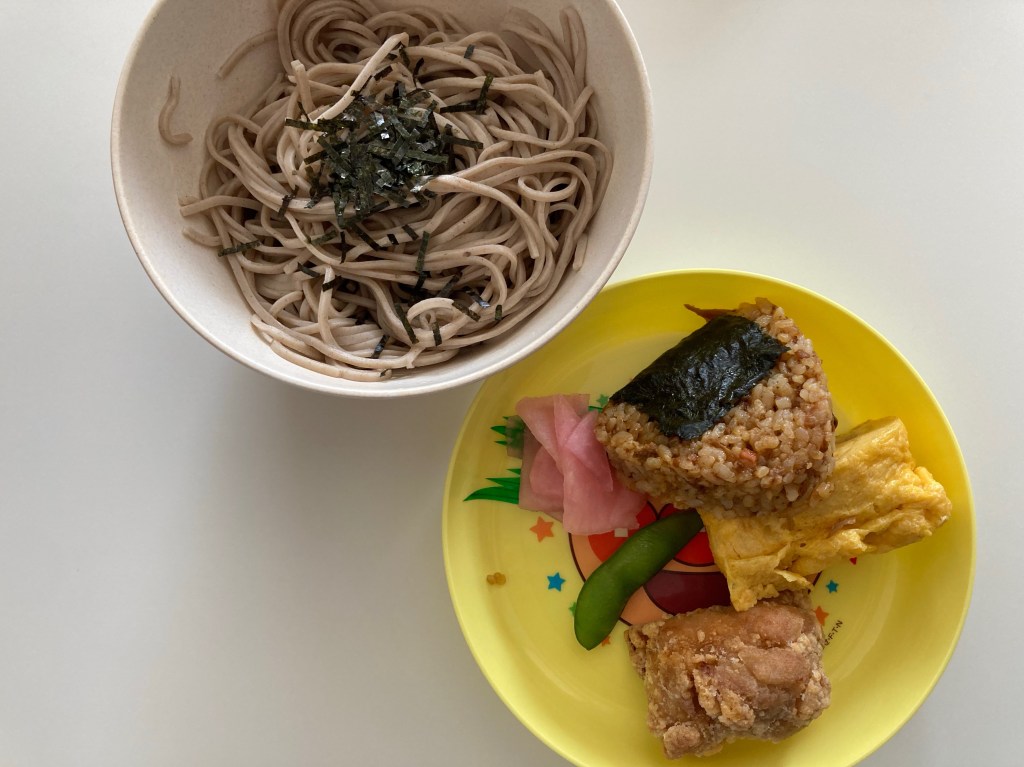 おそばとおにぎりセットです。