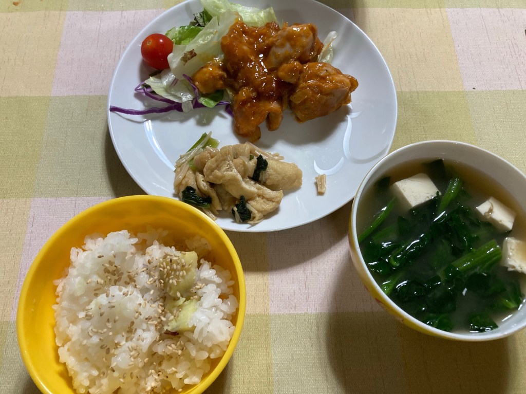 さつまいもご飯、バーベキューチキン🍗