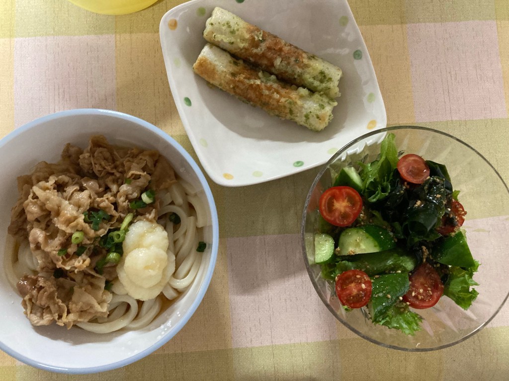 ぶっかけ肉うどんとチョレギサラダ🥗