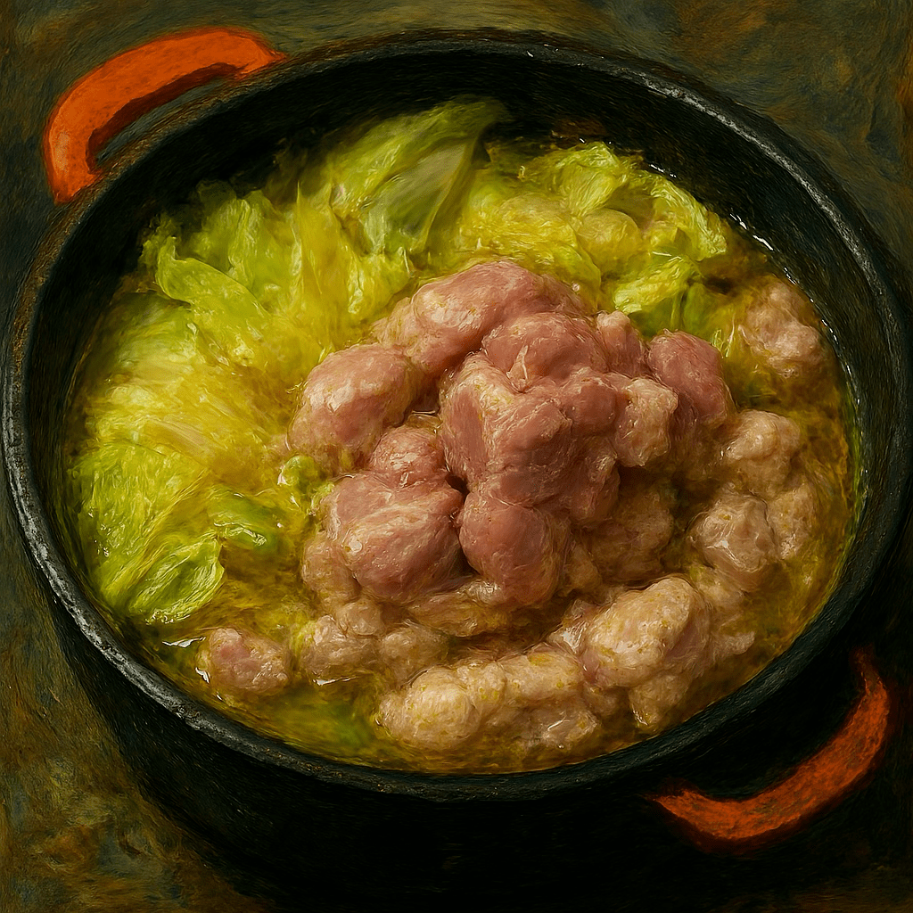 鍋いっぱいに敷き詰めた白菜は、火を入れると驚くほどかさが減って、甘みがぐっと増します。そこにゴロッと大きめに切った鶏もも肉をのせて、あとは出汁でコトコト煮るだけ。味付けは控えめにして、素材そのものの旨みを楽しむのがポイントです。